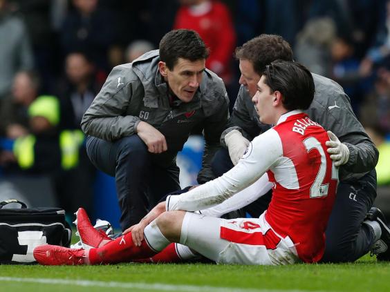 Hector Bellerin was not fit enough to start against Watford on Tuesday night but Wenger decided to take a risk today and play the young right-back. But Bellerin, still struggling with an ankle injury, never looked fully ready for the match. It should not have been too much of a surprise when he failed to jump high enough to the second ball after Petr Cech saved from Diego Costa’s header, beaten to it by Marcos Alonso, an incident in which Bellerin was injured and had to go off.