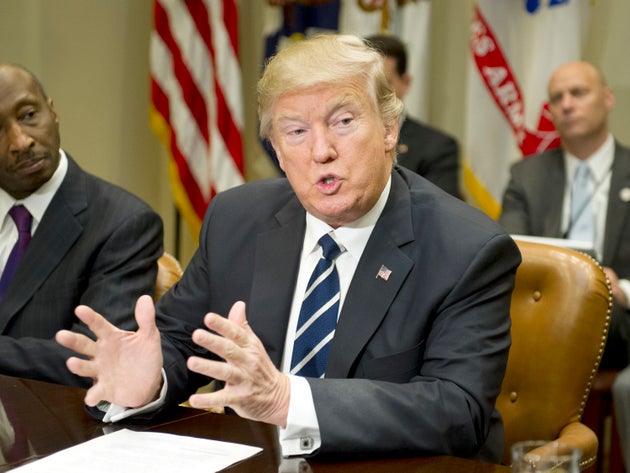 President Donald Trump attends a meeting in the Roosevelt Room of the White House on Jan. 31. A new HuffPost/YouGov survey finds Americans increasingly expect him to literally carry out his campaign pledges.
